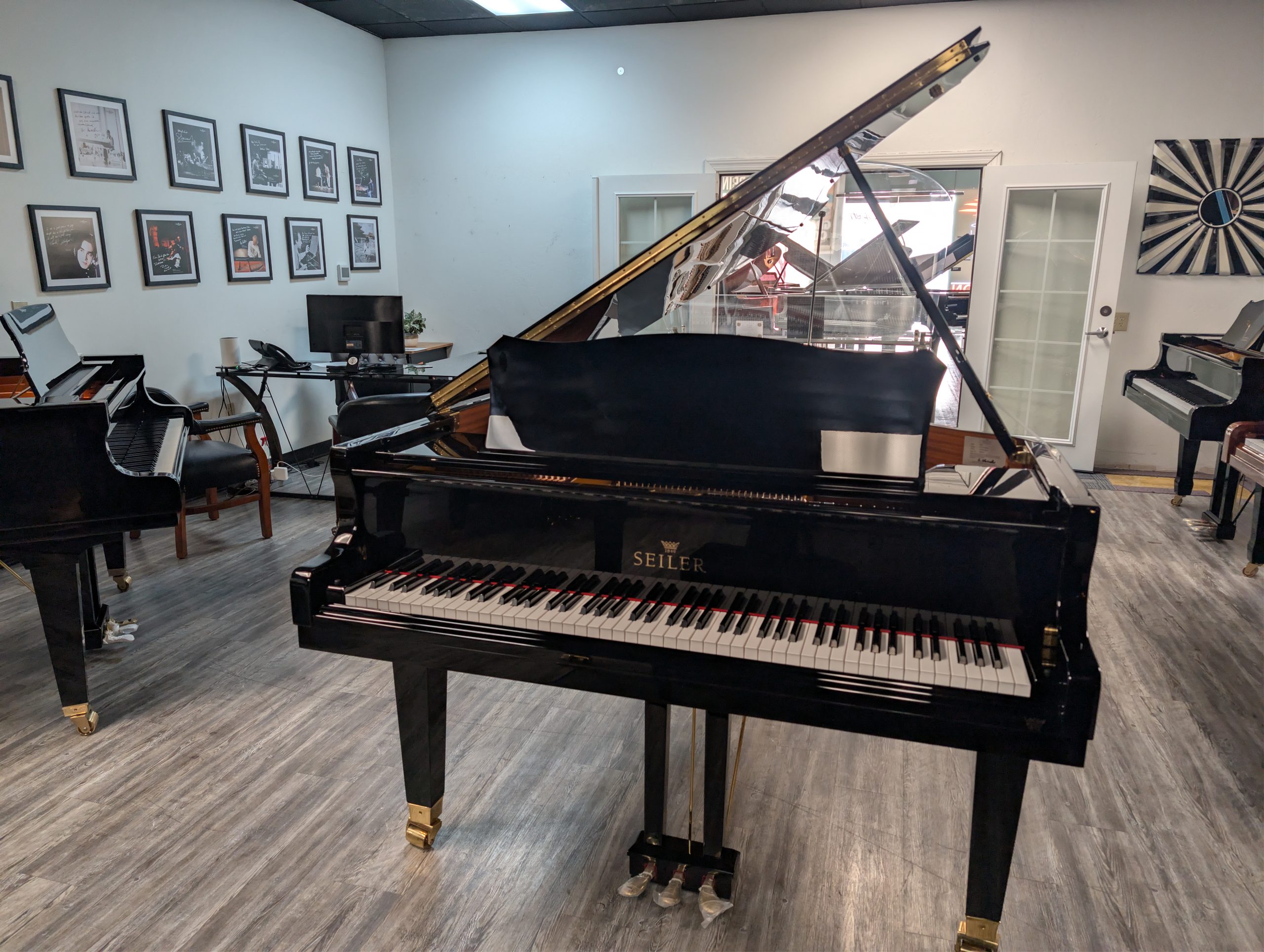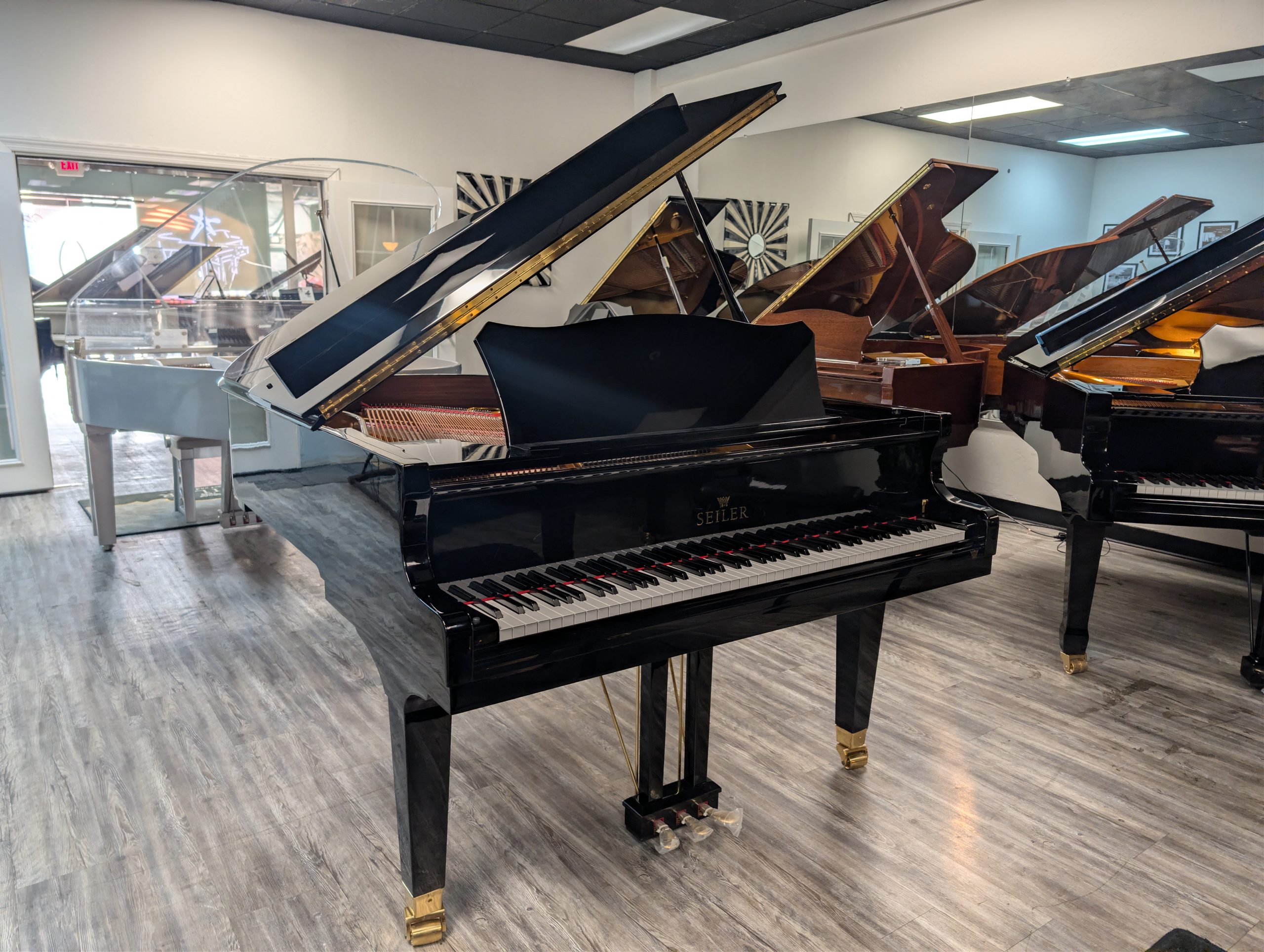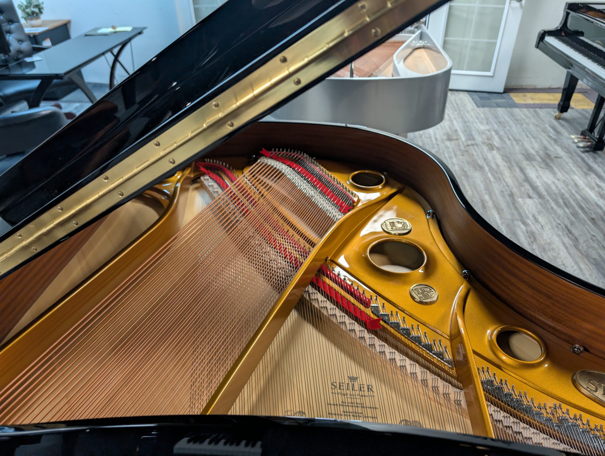 The Seiler ES-168 is part of the Eduard Seiler series, a mid‑level grand piano line designed using Seiler’s traditional German scale designs but manufactured in Indonesia under Seiler’s ownership (now part of the Samick group) at a more accessible price point than the fully German‑made models. Built as a 5′6″ (168 cm) grand, the ES‑168 includes features like Renner action components, German‑made Abel “T”‑wired hammers, Roslau blue wire strings, a solid spruce soundboard, and a beech/maple rim, all contributing to a warm, balanced tone with clear bass, bell‑like midrange, and articulate treble. Its wide‑tail design accommodates longer bass strings for greater resonance in a smaller piano, making it popular among pianists seeking professional‑inspired performance and expressive dynamic range in a more compact span. This blend of classic European design and modern production has led many musicians and dealers to regard the ES‑168 as a strong competitor to similar sized instruments at its price level.